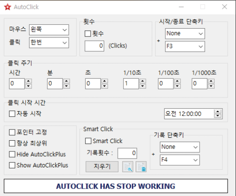 오토클릭 Hotkey - 시작과 종료 단축키 지정 (기본 F3)